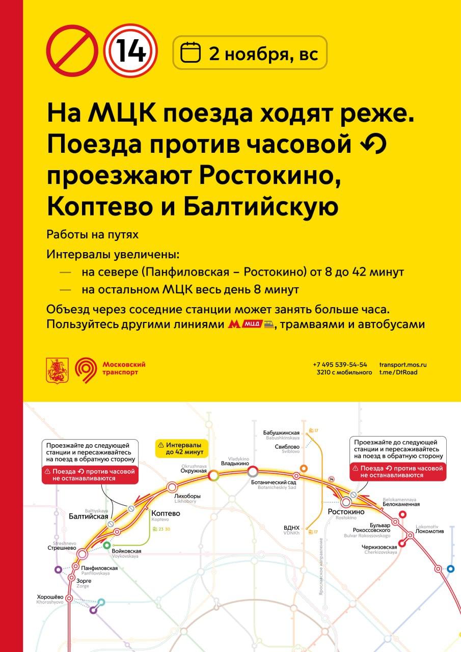 2 ноября значительно изменится движение на МЦК: по возможности пользуйтесь метро, МЦД и наземным транспортом.
