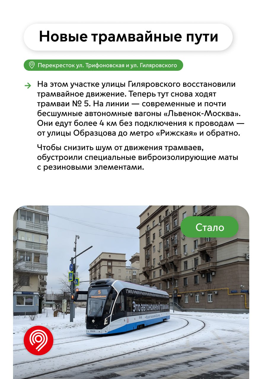 «Запуск трамвайной линии на Трифоновской улице требовал пересмотра транспортной схемы и современных решений. Раньше здесь ездили только автобусы и автомобили. Теперь ходят автономные трамваи “Львёнок-Москва”, которые уже стали очень востребованными у пассажиров. Расширяем столичную трамвайную сеть по поручению мэра Москвы Сергея Собянина», — рассказал Максим Ликсутов.