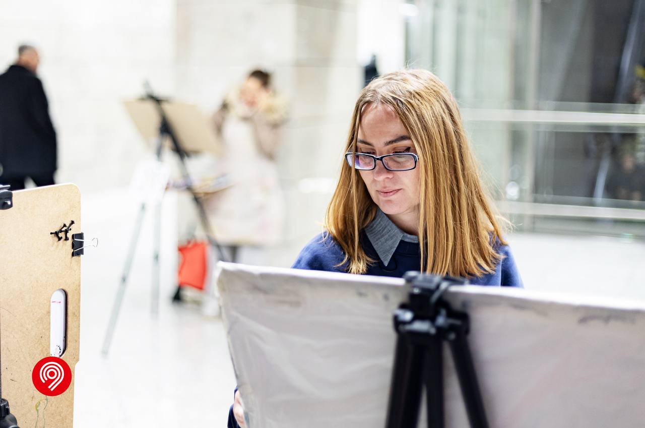 Также в честь новой экспозиции провели творческую сессию на площадке. 11 художников создавали работы и вдохновлялись архитектурой и атмосферой станции БКЛ.